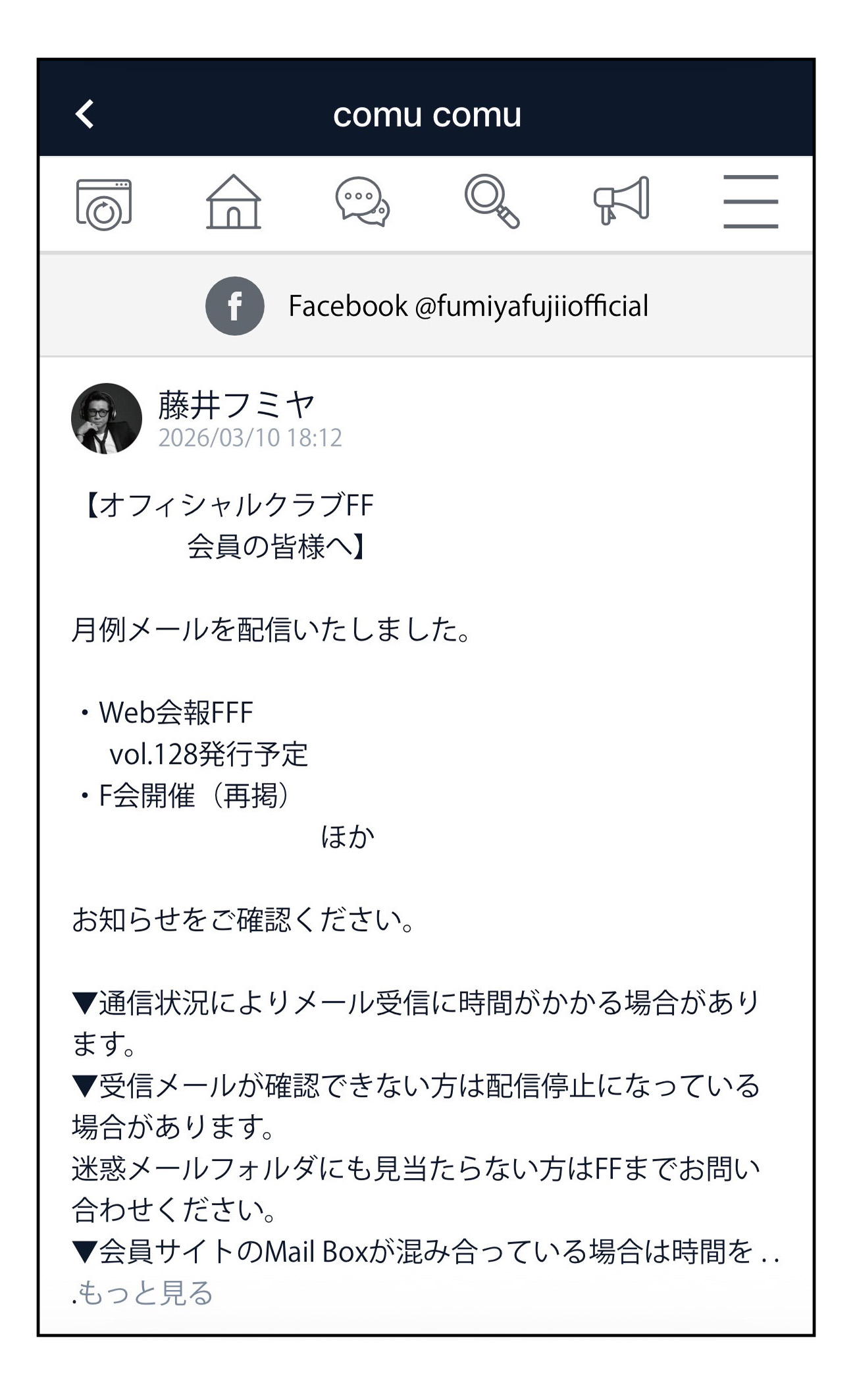 オフィシャルクラブFF会員のみご登録いただけるSNSサービス「comu comu」。