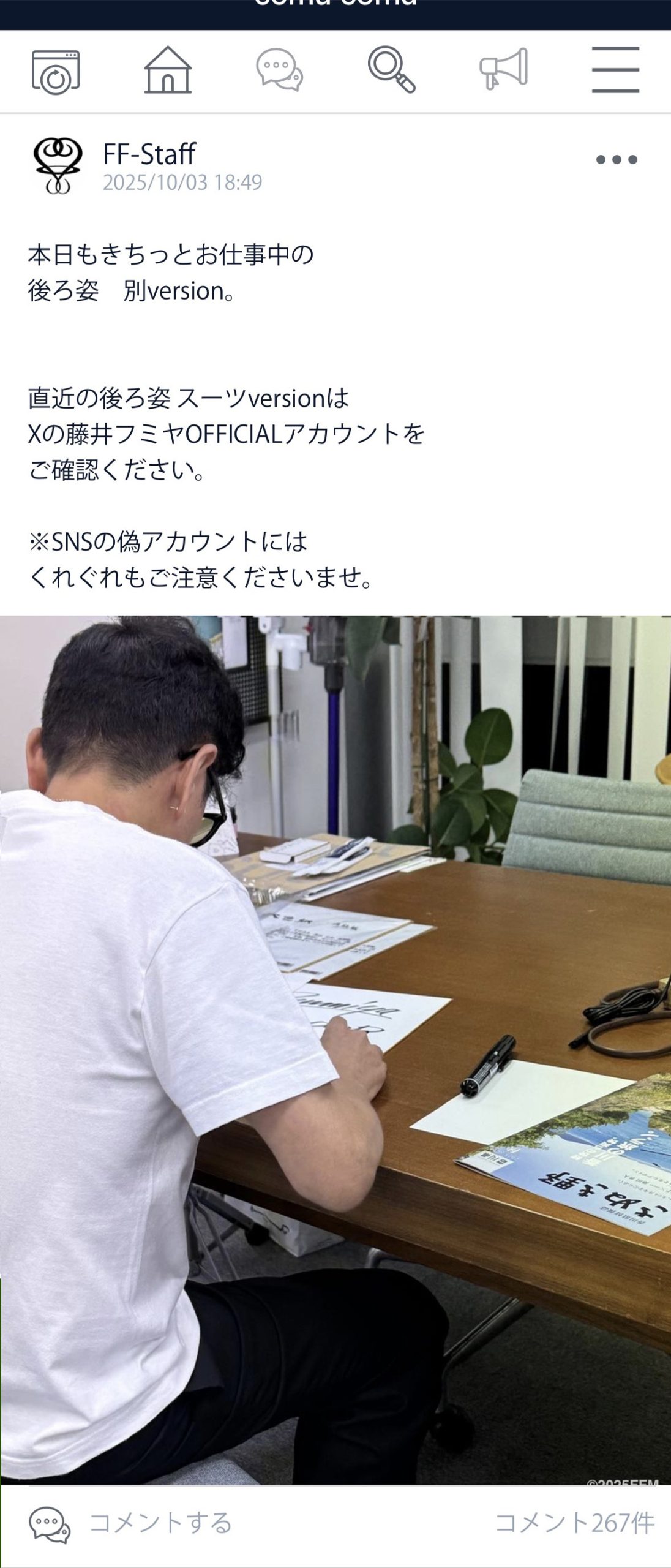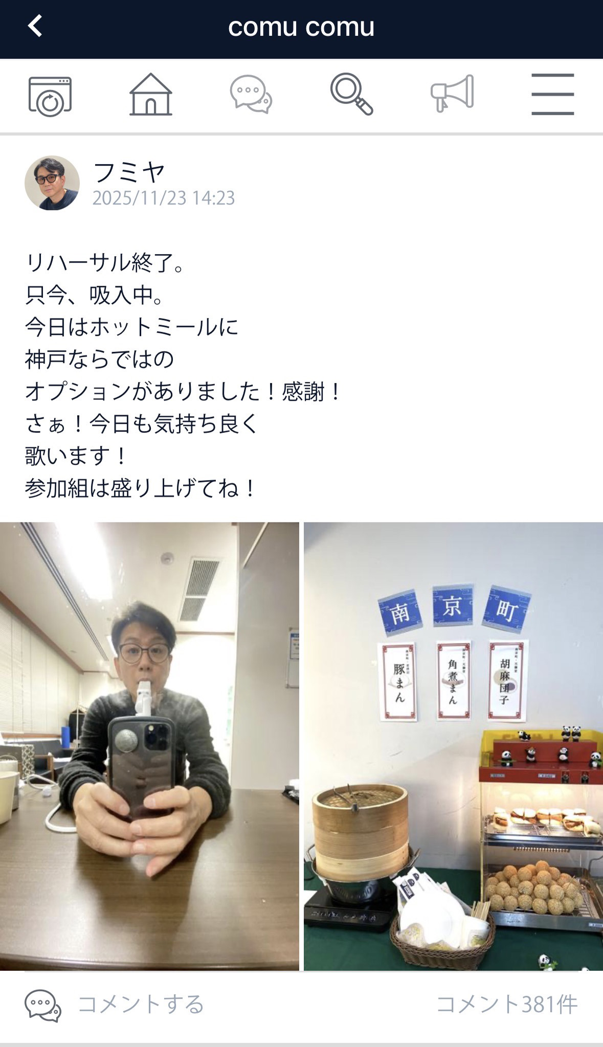 フミヤとFFメンバーを直接結ぶSNS「comu comu」には、フミヤ自身も日常のひとコマを頻繁に投稿。会えない時も、つながっていることを実感できる場所です。F友さん同士の交流も盛り上がっています。未体験の方は今すぐ!