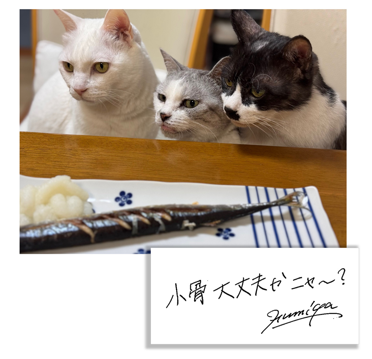 今年の秋刀魚は大きくて美味しい! 食卓に並べれば、愛猫もご相伴にあずかります!とばかりに真っ先に同席してきます。旬のうちにたくさん美味しい秋刀魚を食べたいのは、猫も同じようです。